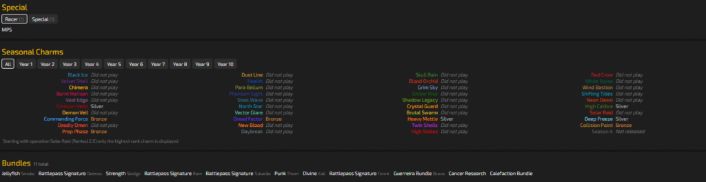 From Solar Raid, the game shows only the highest seasonal rank charm.
